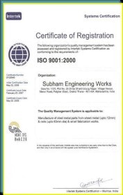 We at SUBHAM ENGINEERING WORKS, ensure customer satisfaction with consistent quality delivery at competitive pricing. We adopt a Quality Management System which compiles with ISO 9001:2000. We constantly revise our policies with respect to change in the business environment and industry norms.